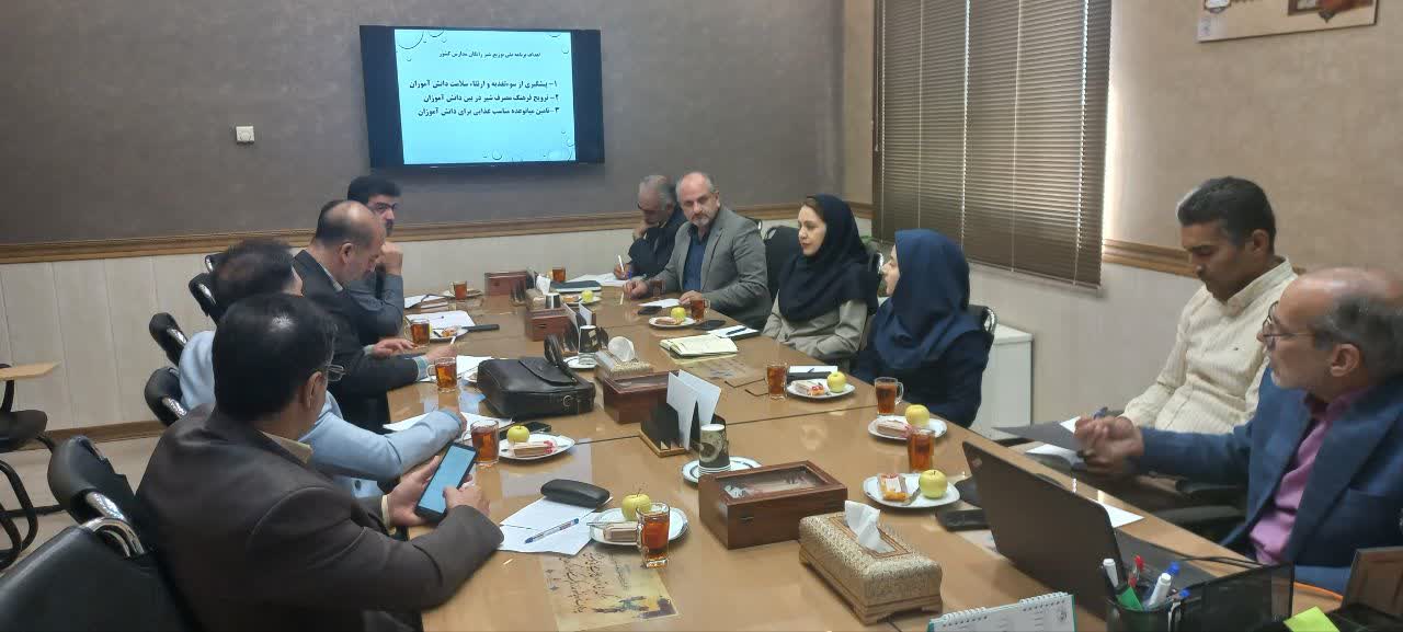 در راستای بند د ماده ۷۱ برنامه هفتم توسعه جلسه کمیته علمی و سیاستگذاری برنامه ملی توزیع شیر رایگان در مدارس مقطع ابتدایی در روز سه شنبه 15 مهرماه 1404 با حضور نمایندگان ادارات مربوطه در دفتر معاون فنی مرکز بهداشت استان برگزار گردید. در طی این جلسه در خصوص تامین شیر مورد نیاز طرح از کارخانجات مورد تائید غذا و دارو و اداره استاندارد، تشکیل کمیته اجرایی توسط استانداری و دبیری اداره کل اموزش و پرورش، نظارت بر فرایند تولید، حمل و نگهداری شیر رایگان در مدارس بحث و تبادل نظر شد و برنامه ریزی لازم جهت توزیع ۳ نوبت شیر در هفته به مدت ۱۶ هفته در مدارس ابتدایی دولتی انجام شد.